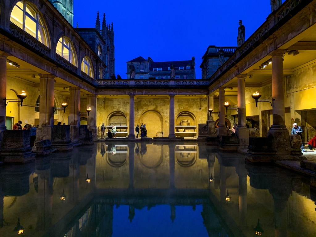 - Roman Baths – another favorite. This is in a town called Bath about 2.5 hours outside of London. A very quaint town. The baths are a 10 out of 10. Another situation where I was engrossed (but learned to keep track of the time). It’s an ancient bath house that the Romans used that is fed by a hot spring nearby. It was so interesting to witness being in a place that stood buzzing with people thousands of years ago.